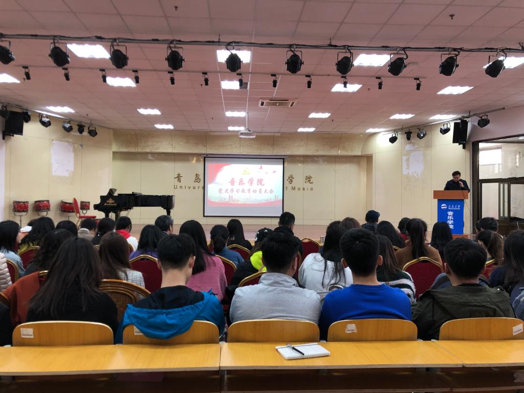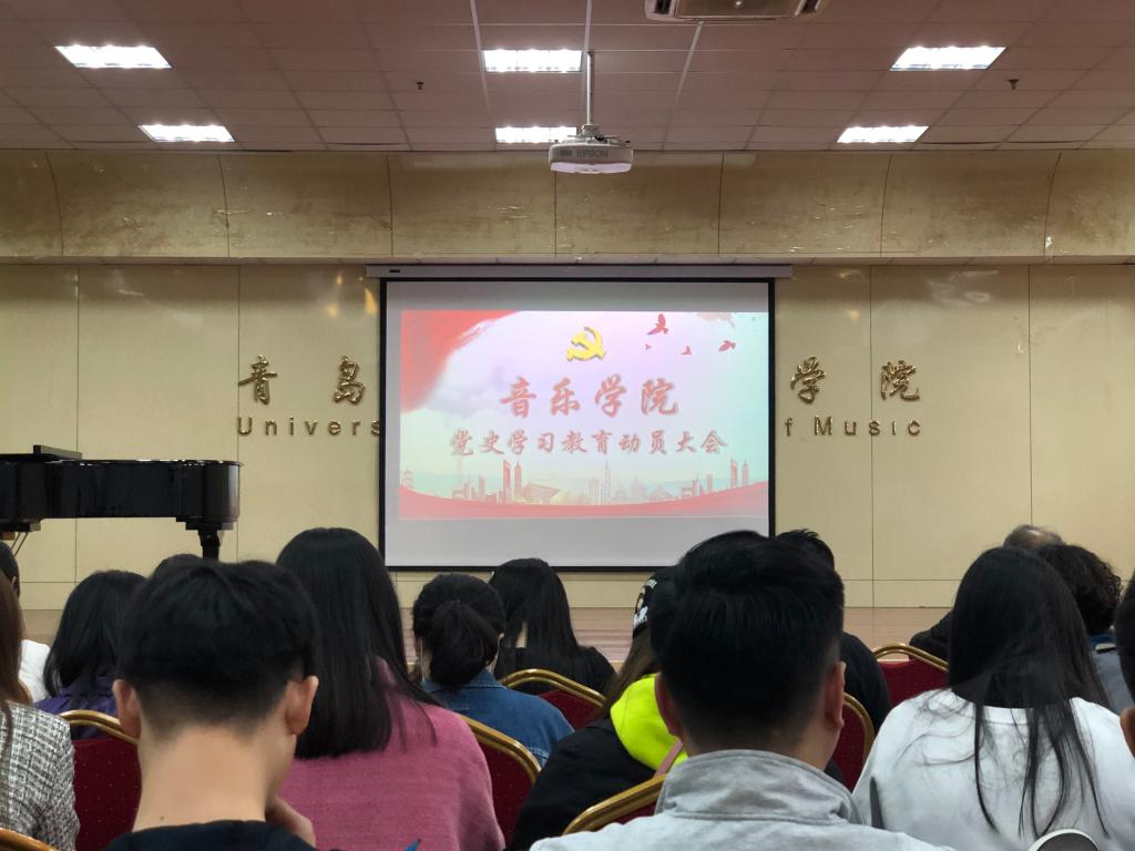 4月1日下午,音乐学院在德雅楼103排练厅举行党史学习教育动员大会。全院师生党员、入党积极分子80余人参会。动员大会由院党委书记姜世安主持。