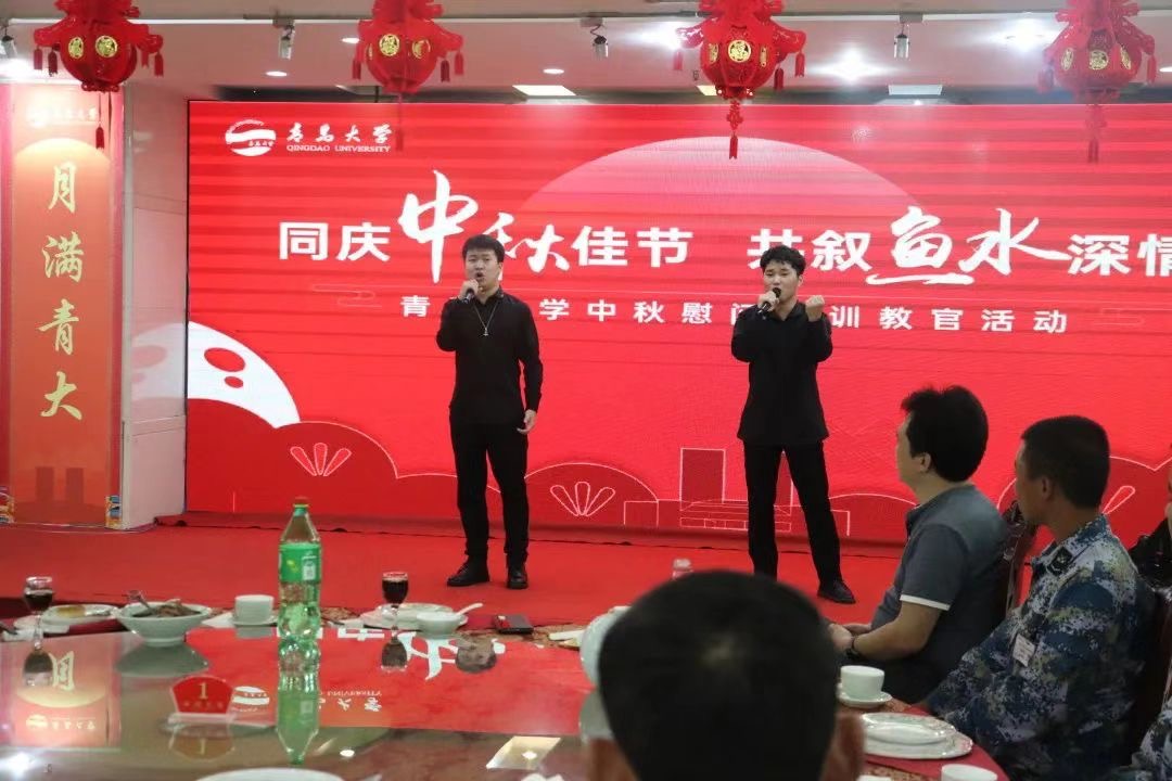 杜方波在致辞中表达了对全体军训教官的感谢,感谢他们用甘于奉献的精神与切实的行动为2021级新生上了生动的一课。希望中秋慰问活动能够为教官们送去青大师生真挚的问候与节日的祝福。