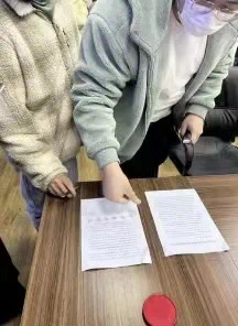 温丽老师宣读倡议书,在场的学生党员代表在倡议书签字并按手印,承诺用实际行动积极投身抗疫一线,用担当作为诠释一名党员就是一面旗帜的光辉形象。
