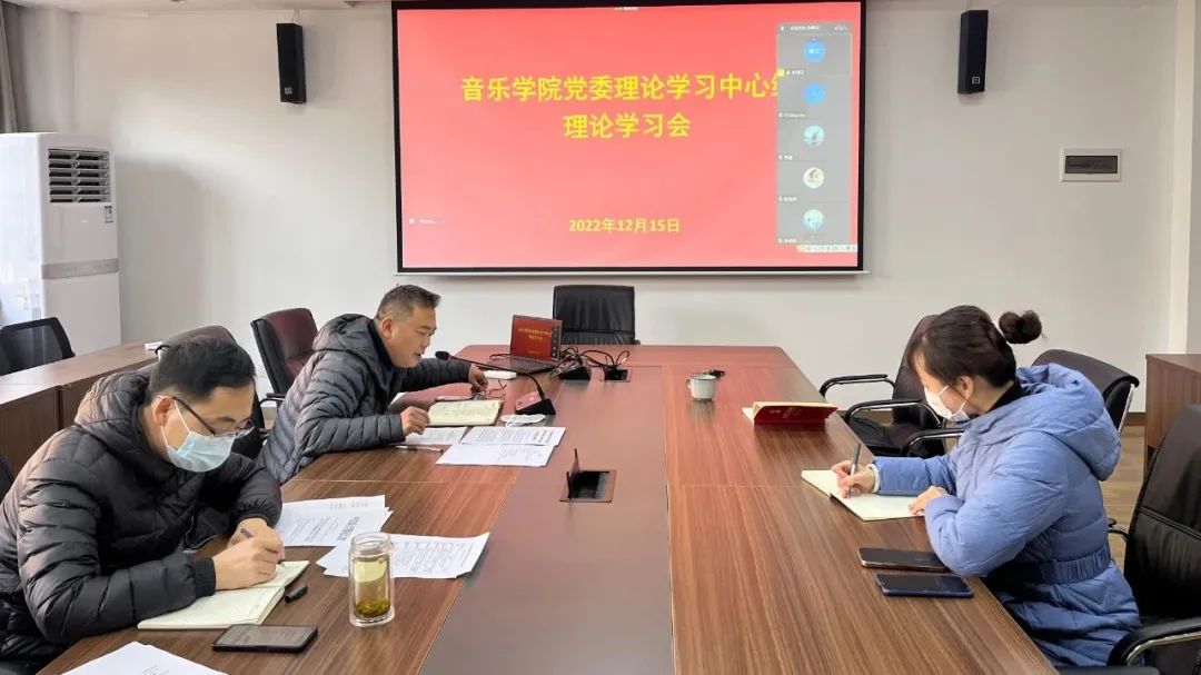 2022年12月15日,音乐学院党委理论学习中心组通过线上线下相结合的方式召开第十次集中学习会。学院党委理论学习中心组成员、院内设机构负责人、院团委书记、各支部书记参加学习会,院党委书记李建新主持学习会。