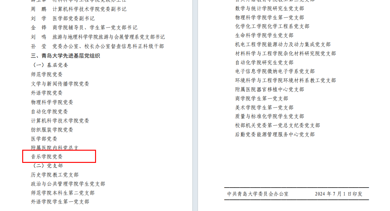 在中国共产党成立103周年之际,为表彰先进、凝聚力量,进一步激励广大党员干部不忘初心、牢记使命,真抓实干、担当作为,充分发挥先进典型的表率示范作用,学校评选表彰了一批先进集体和优秀个人,其中,音乐学院党委获评“91吃瓜