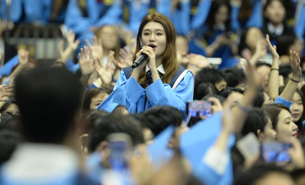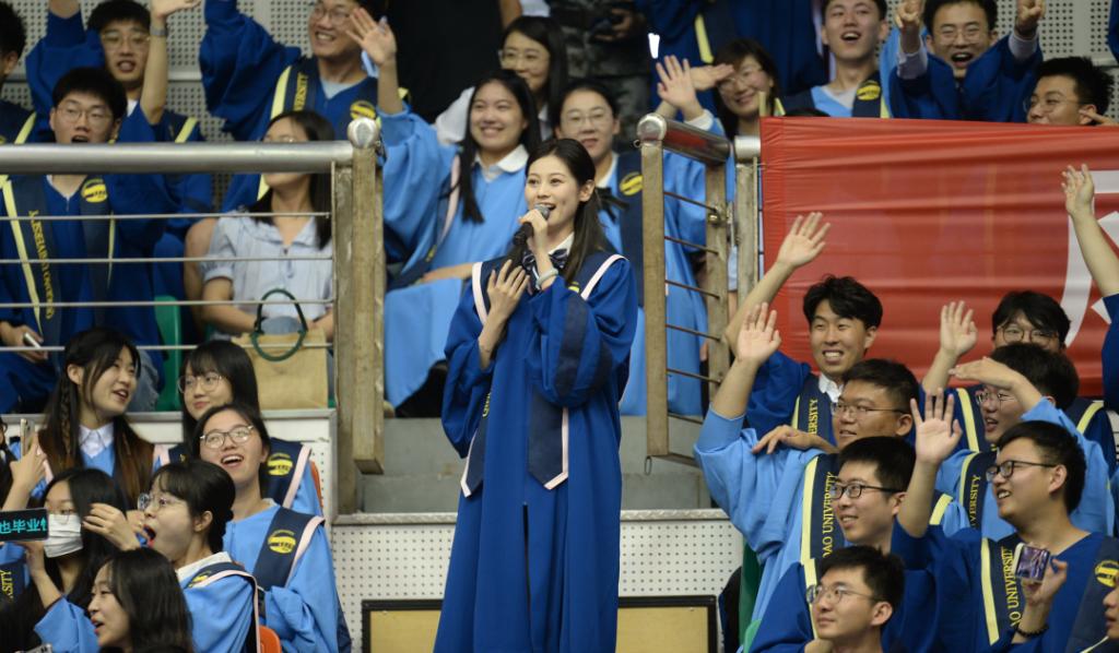 张渊婧、黎星雨参与演唱的《superstar》引起全体大合唱。一句“请看见我 让我有梦可以做”唤醒了每个毕业生的初心。