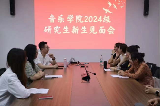 9月12日下午,音乐学院召开2024级研究生新生入学教育与师生见面会。音乐学院党委书记魏喆吉、副院长李晓囡、研究生教学秘书毕晓琛、研究生会学生干部以及2024级全体研究生新生出席本次会议。