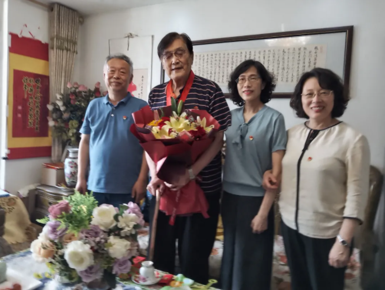 2021年6月28日下午音乐学院党委书记姜世安,学院副院长王文俐,党政办主任胡瑞琴前往侯延晓、拾景林家里 为两位老教授颁发了“光荣在党50年”纪念章。姜世安书记代表院党委向两位老党员表示祝贺和崇高敬意。