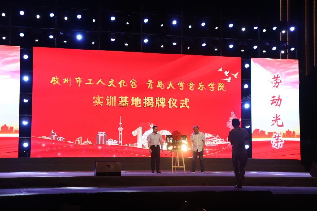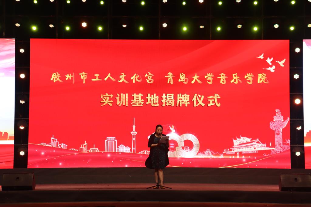 揭牌仪式后,举行了“庆祝中国共产党成立100周年”胶州市总工会专场演出,由音乐学院师生和胶州市总工会职工艺术团联手为胶州市的职工朋友献上了精彩的节目。