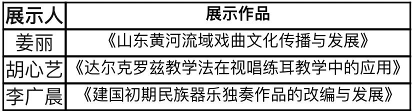 参展海报以音乐与舞蹈学学术型硕士与学科教学(音乐)方向硕士为主,将自己的研究论文以及现阶段所取得的研究进程进行整理并加以汇总,内容紧贴学科发展需要,聚焦于音乐类各学科学术前沿问题与热点问题。