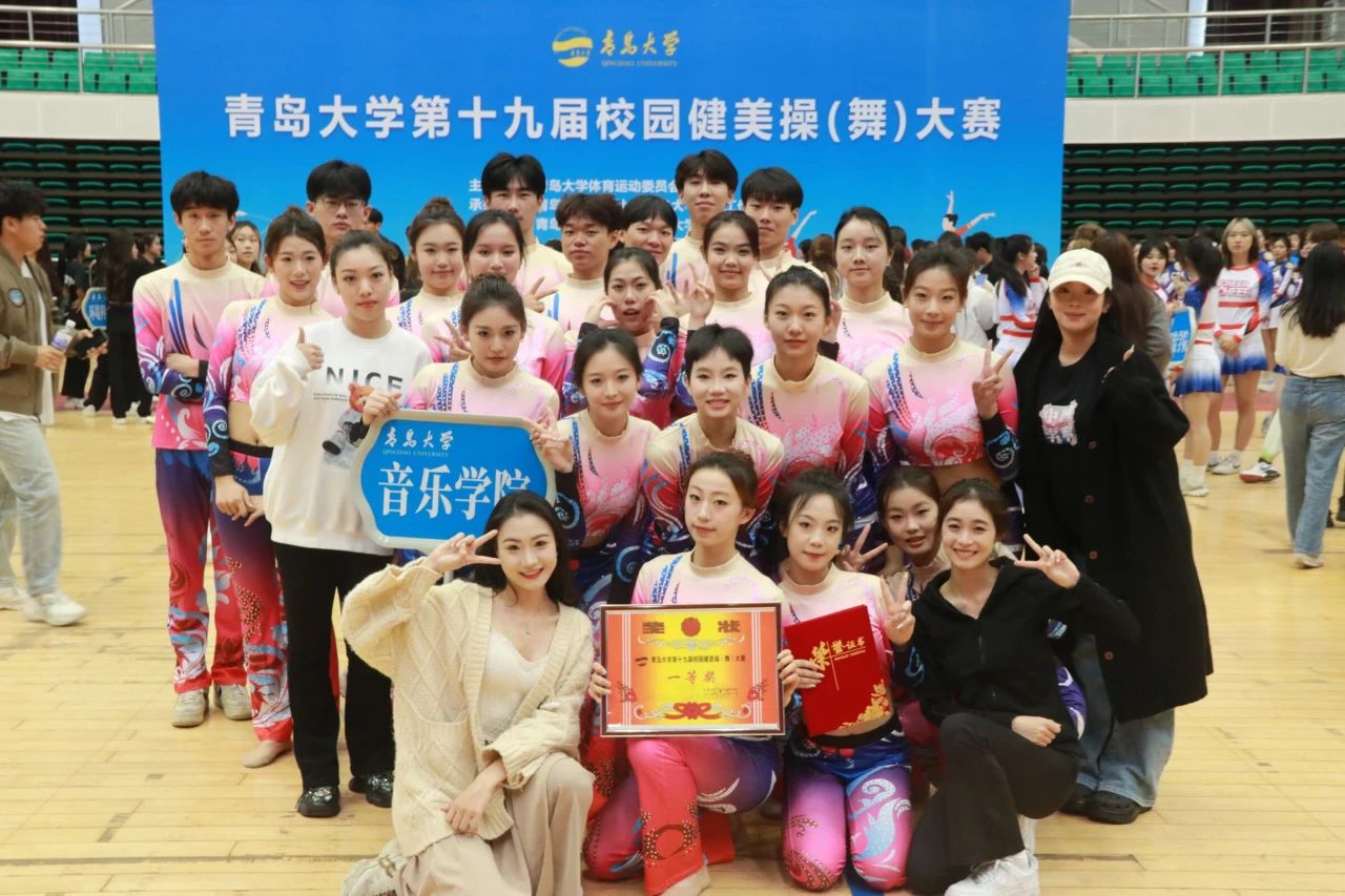 十九届校园健美操大赛在浮山校区体育馆成功举办。音乐学院舞蹈系学生参与比赛并荣获一等奖。