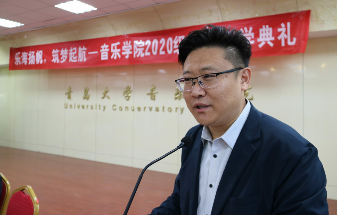 歌剧《韩信》的编剧和导演、声乐系主任王景彬代表全体教师发言。他说,希望新生同学们志存高远、脚踏实地,克服艺术类学生容易出现的重技能实践、轻理论学习的缺点,珍惜时间,勤奋学习,做主自己的青春。