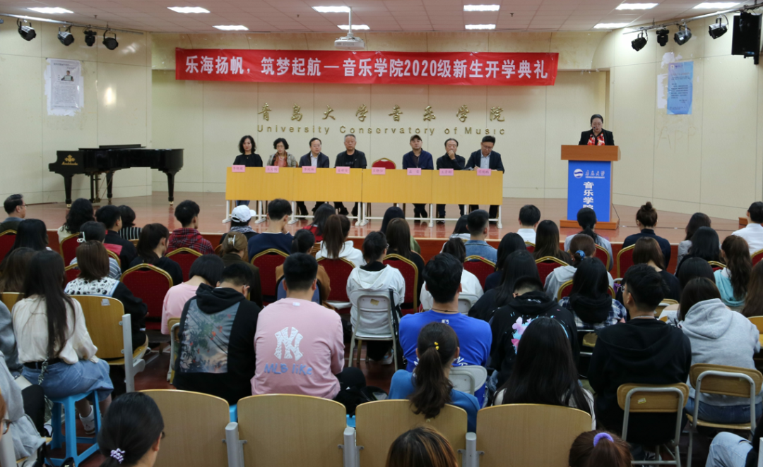 10月8日下午,以“乐海扬帆,筑梦启航”为主题的音乐学院2020级新生开学典礼暨班主任聘任仪式在德雅楼103排练厅举行。学院党委书记姜世安,院长王静怡,校党委组织员李同林、副院长孟雷、王文俐,院长助理李晓囡,各教学系主任、学院职能部门负责人、2020级新生班主任及全体新生参加了会议。学院党委副书记司现鹏主持典礼。
