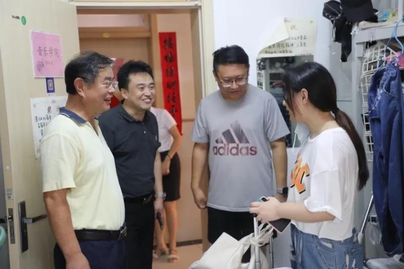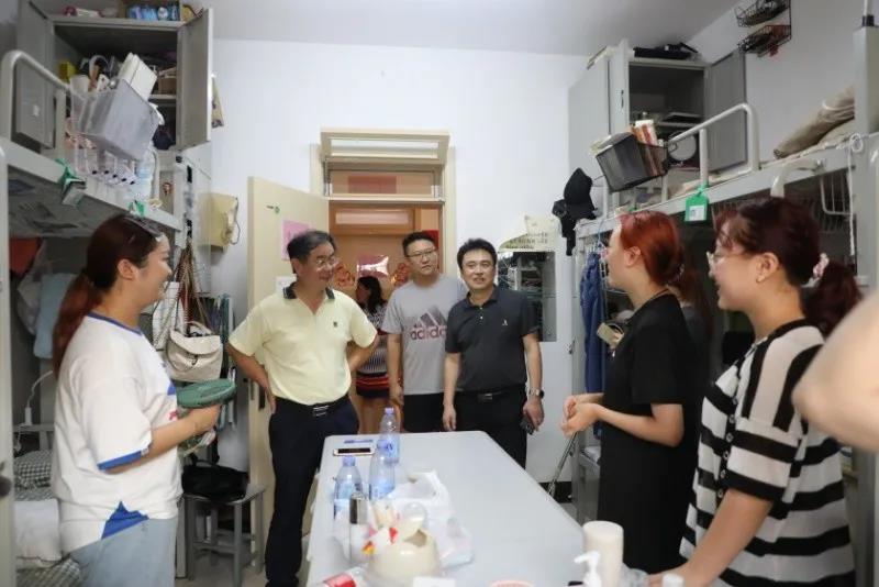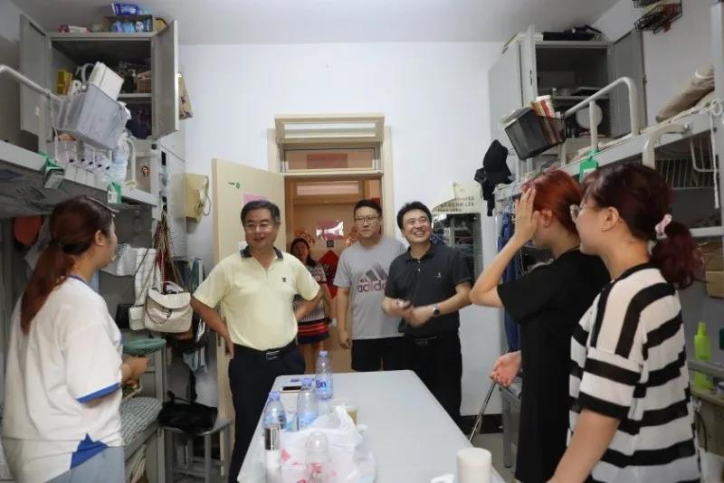 8月15日下午,校长夏东伟、副校长孔伟金一行走进学生宿舍,看望慰问2018和2019级返校学生。学校党委办公室、校长办公室,学工处负责同志,以及相关学院分管领导陪同。