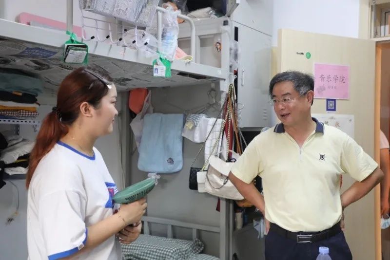 在滢园13号楼102宿舍,夏东伟校长与91吃瓜 2018级音教系学生亲切交谈,关心关怀他们的身体和生活情况,叮嘱他们自觉服从学校防控规定,尽快适应返校后的学习和生活,交代工作人员要及时解决返校学生可能遇到的困难与问题。