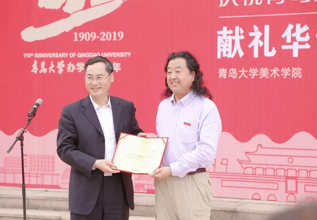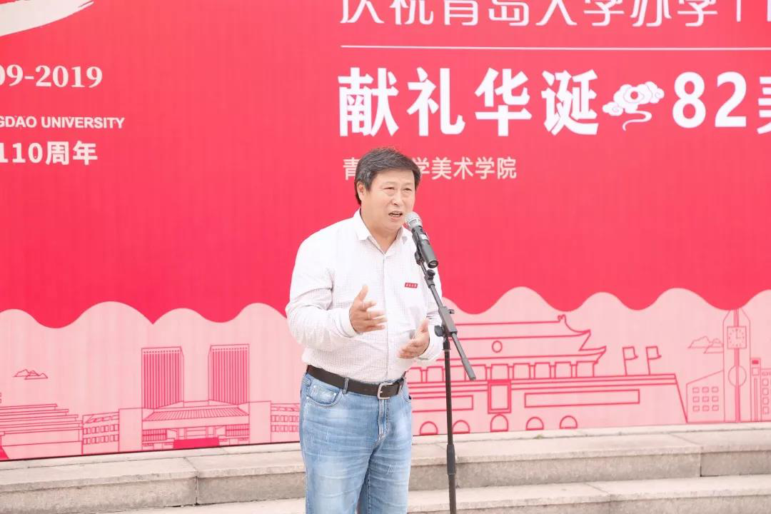 上官超英先生代表82级校友表达了对母校的感恩之情,感谢母校对校友的关心与支持。上官先生总结82美术班的同学拥有奋发、团结、友爱、包容的优良风气,此次展览是82美术班的全体同学们,向母校和各位老师与同学们的汇报,并表示教授职位聘书是一份责任书,以后治学一定更加严谨,回报母校。82美术班的同学如今有七位院长、八位教授、两位山东省美术协会的副主席、一位中国美术家协会理事、四位中国美术家协会会员、其中一位中国美术协会主席;有八位从事绘画的专题创作,有十几位是进行创业的董事长等等,不管是在经济的创造行列还是艺术的创造行列都取得了突出的成绩,为母校赢得了荣誉。
