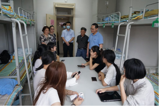 党委常委、副校长李军一行前往美术学院新生宿舍走访慰问,美术学院党委书记崔洪林、党委副书记夏锡梅、学工办主任郭瑾瑜和新生辅导员王宁陪同。