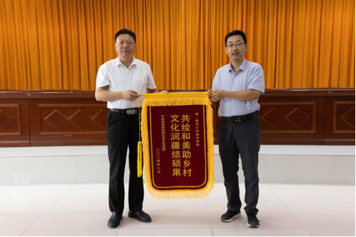 党委常委、副校长陈涛代表学校接受于田县奥依托格拉克乡司法所赠送的锦旗。