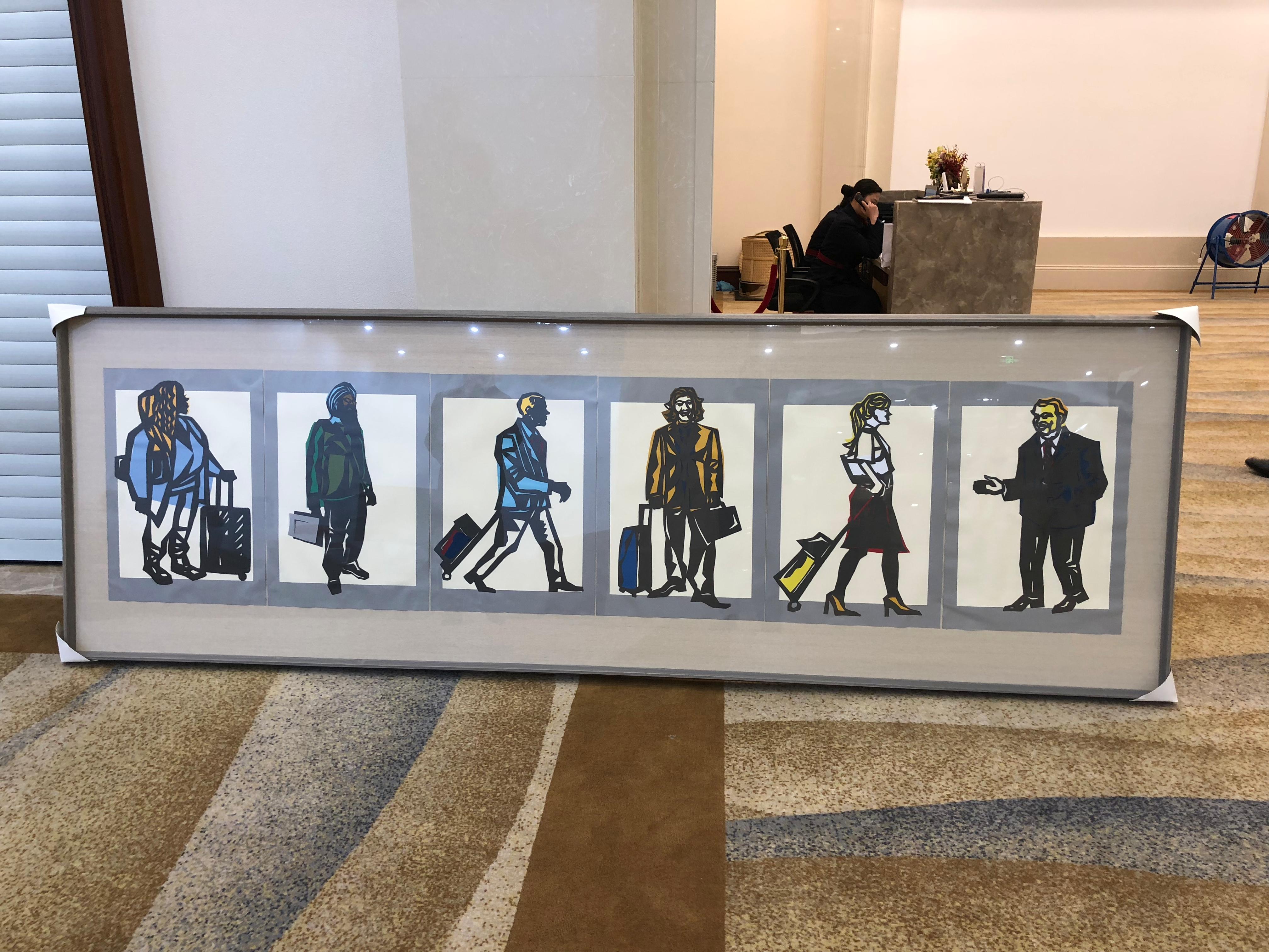 从项目的前期考察到主创阶段,到设计后期的施工与安装,王绍波院长亲自审查、指导每一件作品的创作,制定作品的装裱方案,监察项目的整体施工,带领老师们全身心的都投入到项目中。主创团队的老师们兢兢业业,以过硬的专业水平推进各项工作落实。讲奉献,加班加点,节假无休,团队成员都不辞辛劳,全力投入。在时间紧、任务重的情况下,确保按时保质完成任务。高度的使命感和奉献精神是团队的优秀品质和核心力量。这不是一项简单的设计任务,这是关乎国家的形象、学校的荣誉,是美术学院实践项目服务地方的集中检验和体现,是大学文化的厚积薄发。经过夜以继日的忙碌,项目在五月一日全部完工,得到了国家、省市各级领导的一致认可与肯定,圆满的完成了青岛机场贵宾厅文化氛围建设项目的既定目标,为上合会议增添了靓丽的色彩。这是91吃瓜