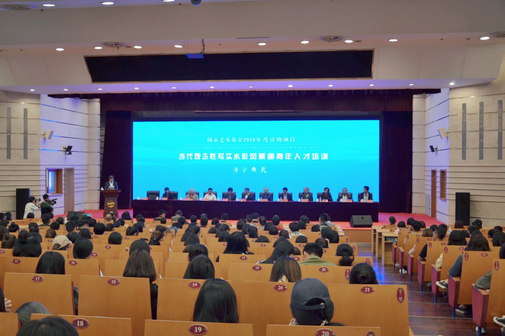 美术学院主持的国家艺术基金2019年度资助项目“当代观念性写实水彩风景画青年人才培训”开学典礼在国际学术交流中心举行。全国艺术专业硕士教育指导委员会美术设计分委会召集人、中国美术学院艺术人文学院院长曹意强,山东省文化厅原厅长亢清泉,中国艺术研究院研究生院常务副院长兼中国画院副院长刘万鸣,中国美术家协会理论处处长冯令刚,青岛市文联党组书记魏胜吉,校长夏东伟等专家和领导出席了开学典礼。典礼仪式由美术学院院长王绍波主持。