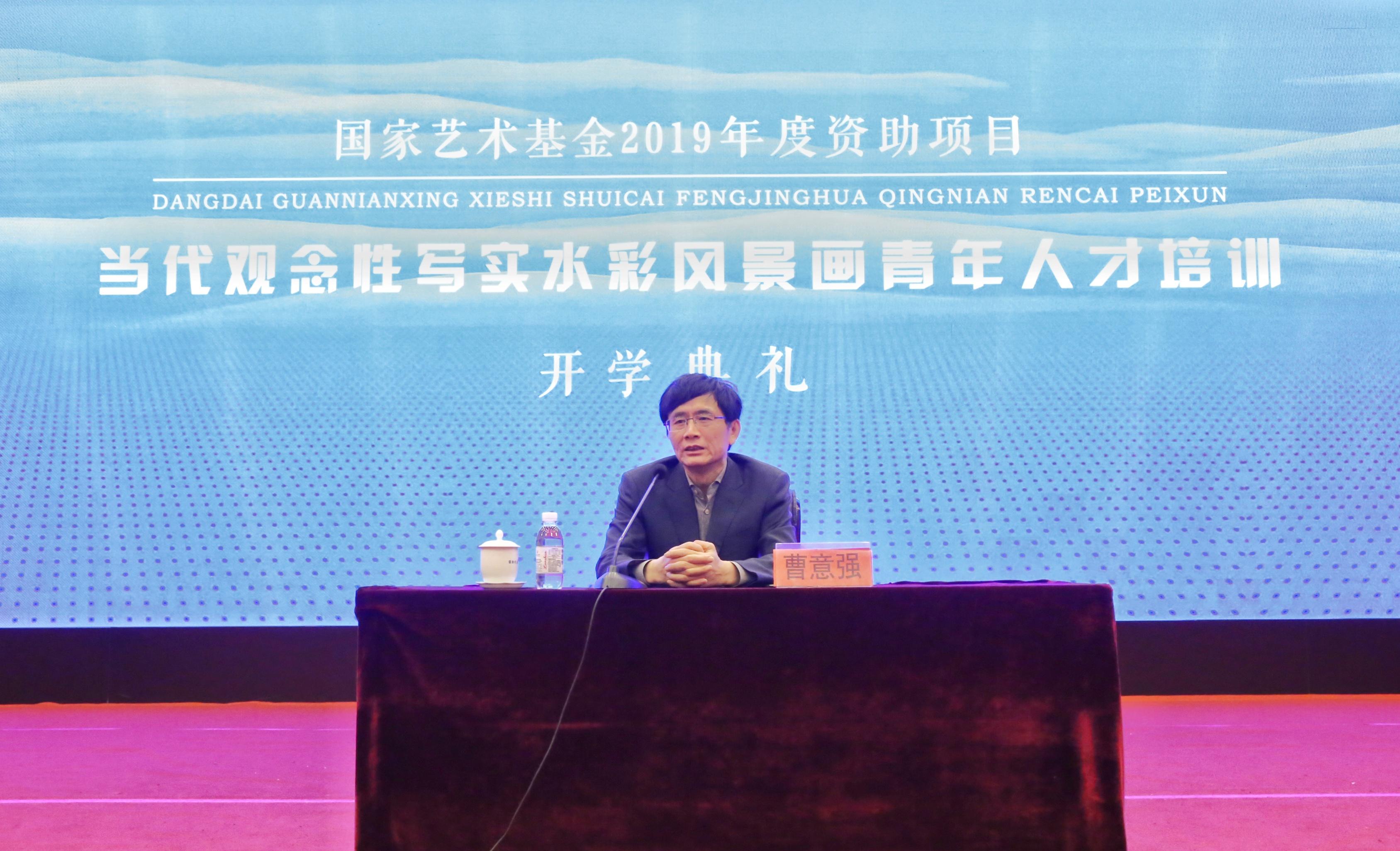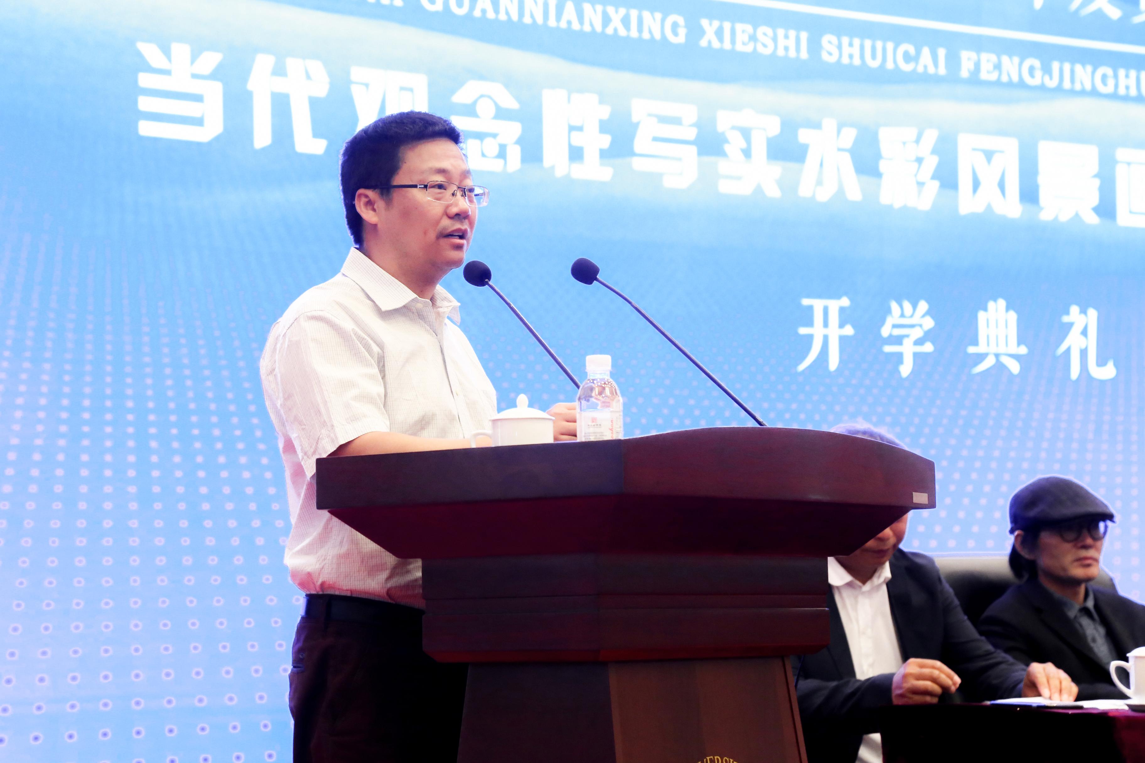 夏东伟校长在致辞中向莅临开学典礼的各位专家表示了欢迎和向入选的学员表示了祝贺。他指出,青岛是水彩画传入中国最早的城市之一,也是著名的写生基地。水彩画作为世界艺术瑰宝,在融入了中国的传统美学思想后,具有了情与景的真实美、民族化的意象美、有与无的虚实美、节奏与韵味的动静美等鲜明特点,成为中西方文化艺术融合的典范。国家艺术基金委将“当代观念性写实水彩风景画青年人才培训”项目放在我校,是对于学校水彩画教学和创作实力的信任。