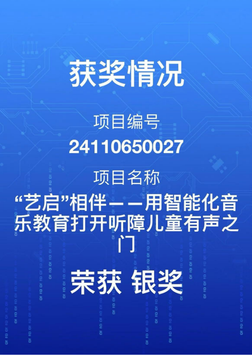 “艺启”项目全称为“艺启”相伴——用智能化音乐教育打开听障儿童有声之门。该项目聚焦听障儿童这一特殊群体,致力于通过智能化音乐教育手段,为他们开启通往有声世界的大门。项目团队成员充分发挥专业优势,融合艺术与科技,自主研发了一系列适用于听障儿童的智能化音乐教育工具和课程体系。通过这些创新成果,听障儿童能够以独特的方式感受音乐的魅力,在音乐的陪伴下实现身心的成长与发展。
