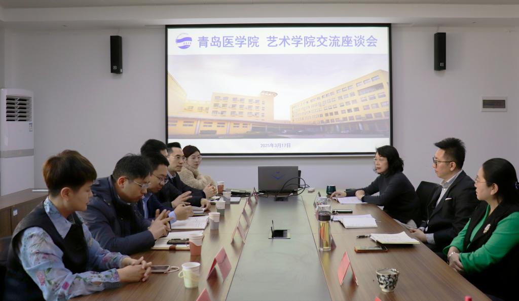 与青岛医学院召开座谈交流会,重点围绕医学与艺术学科领域的交叉融合与合作共建展开研讨。学院党委书记魏喆吉、院长王静怡、党委副书记郭瑾瑜、副院长李晓囡与青岛医学院党委副书记刘学参加座谈会。