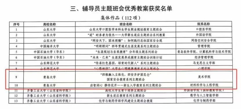 集体精心打造的《“四维融入立体化,四安齐护固昆仑”国家安全教育系列主题班会》凭借独特的教学设计与显著的育人成效,成功入选山东省辅导员主题班会优秀教案