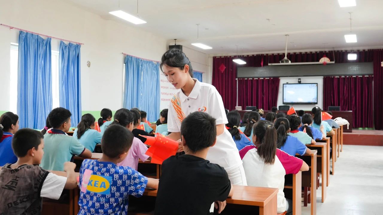 团队将红歌引入推普课堂,成为普通话学习与爱国教育融合的美妙旋律。在课堂上,孩子们跟着支教老师学唱《爱我中华》,“五十六个民族,五十六枝花,五十六族兄弟姐妹是一家”,在歌声中传递着民族团结的力量,也让孩子们在欢快的旋律中纠正发音,提升普通话水平。《我爱你中国》的旋律响起时,团队支教老师引导孩子们理解歌词中的深情,从“我爱你青松气质,我爱你红梅品格”中感受祖国的美好,并用标准的普通话唱出对祖国的热爱。《大海啊故乡》则让孩子们仿佛置身于辽阔海边,在学唱中体会故乡与祖国的紧密相连,同时练习发音和语感。而《花儿为什么这样红》是一首具有浓郁民族风情的歌曲,在教唱过程中,支教老师向孩子们介绍歌曲背后的故事和民族文化,让他们在学歌的同时,深入了解民族文化,增强民族自豪感,也让普通话学习变得更加生动有趣。