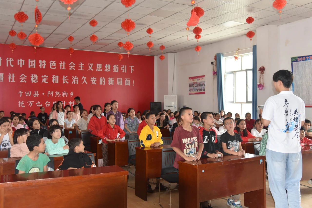 “美润昆仑”新疆乡村美育振兴民族团结实践团牢记总书记殷切嘱托,立足本职岗位,身体力行践行回信精神,让青春在西部、在边疆、在祖国大好河山,在服务人民、奉献社会的火热实践中绽放绚丽之花。8月1日至8月15日,实践团赴和田地区于田县、喀什地区塔什库尔干塔吉克自治县等地,特别是来到习近平总书记回信的克孜勒苏柯尔克孜自治州阿图什市哈拉峻乡谢依特小学,联合当地政府开展推普助力乡村振兴暑期实践活动,用爱心与知识奏响了推普与红色教育的激昂乐章。