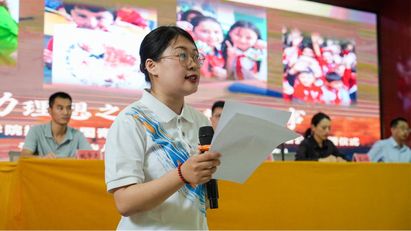 葛海燕代表美润昆仑团队发言。她表示,教育是点亮梦想、塑造未来的基石。感谢中青国合跨越千里,为新疆的孩子送来满载关怀的书包与文具,为“美润昆仑”团队提供全程赞助。这份厚礼跨越千山万水而来,不仅承载着知识和希望,承载着祖国各地关心新疆教育事业发展的爱心人士的深情厚谊,更传递了社会企业心系边疆、情系教育的赤子之心。