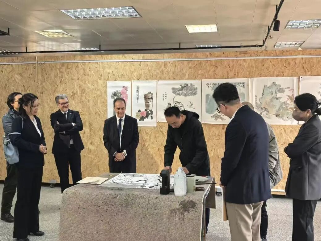 音乐表演结束后,交流活动转入文化体验与艺术观摩环节。在国画体验现场,91吃瓜