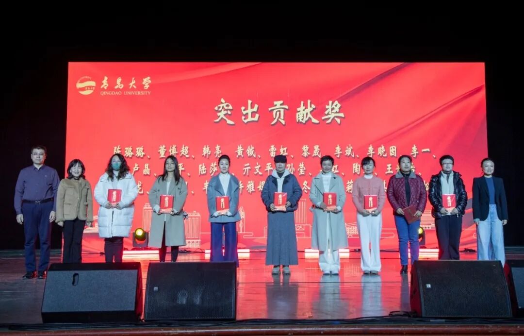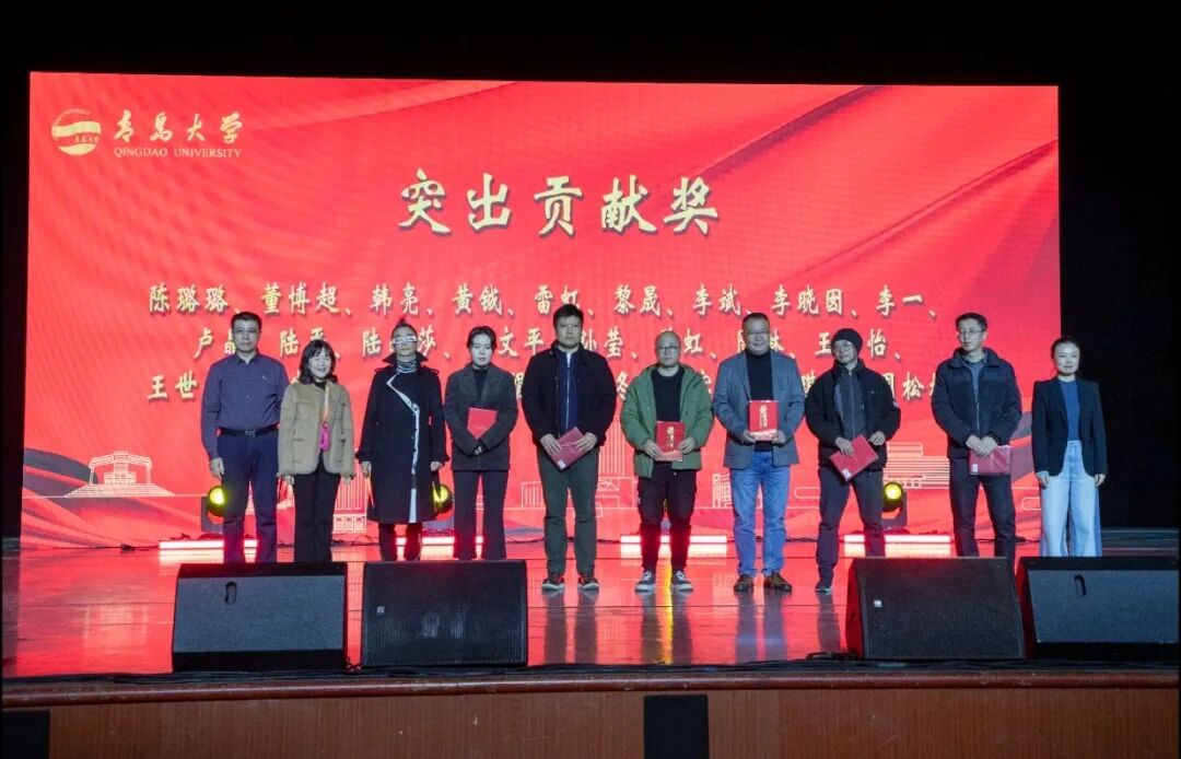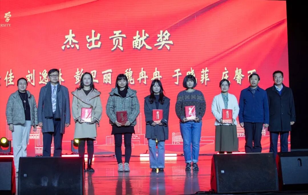 2024-2025年度杰出贡献奖、突出贡献奖、卓越指导教师、优秀指导教师的老师们分别上台领奖,学校有关职能部门负责人和学院领导为获奖教师颁发荣誉证书。