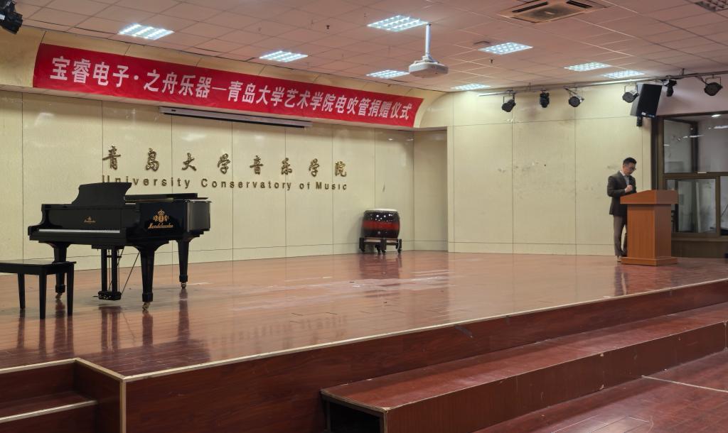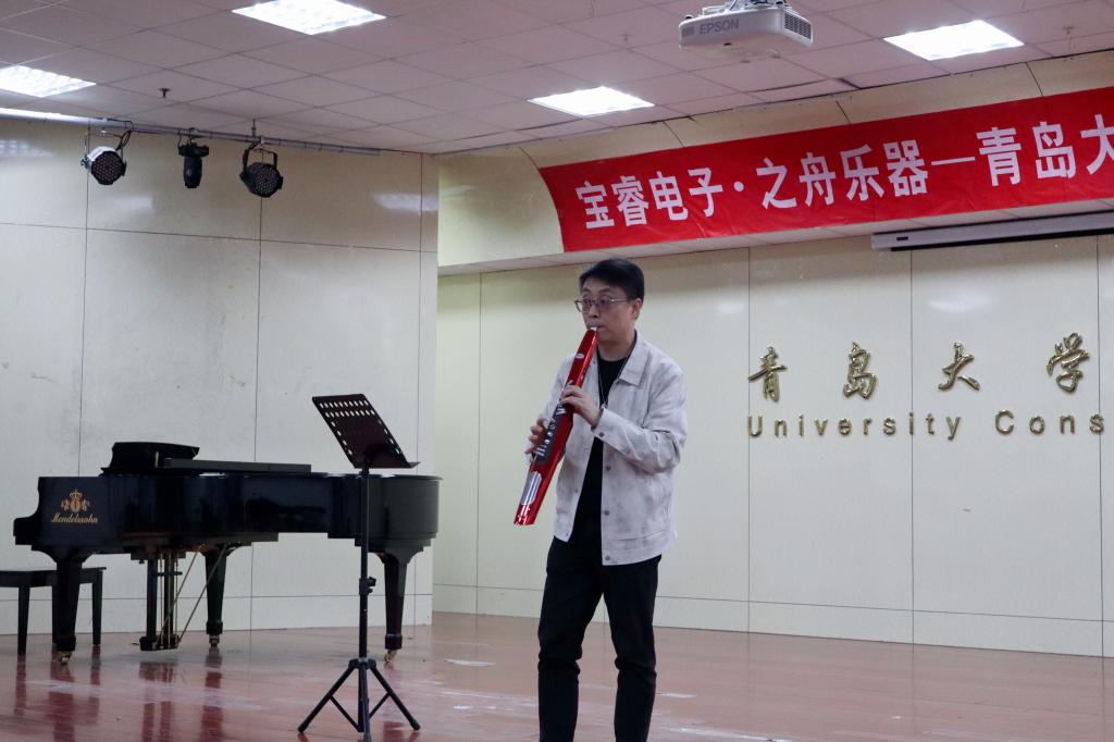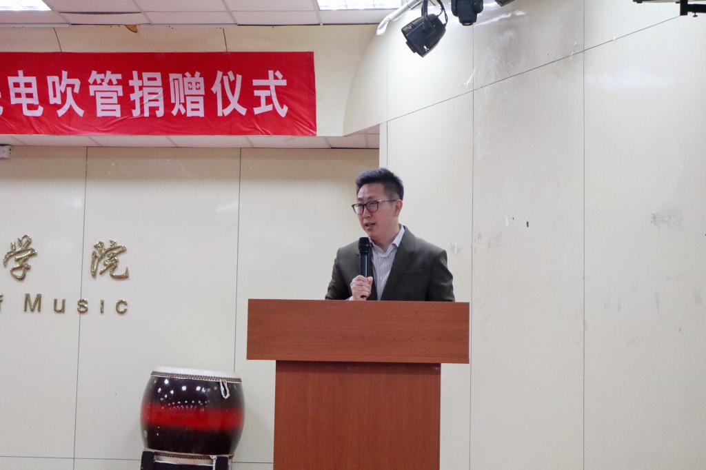 电吹管捐赠仪式”在德雅楼103排练厅举行。江西宝睿电子科技有限公司董事长张建强,校友、之舟乐器(浙江)有限公司总经理连蓬力,中国电吹管演奏家武笑辉,91吃瓜