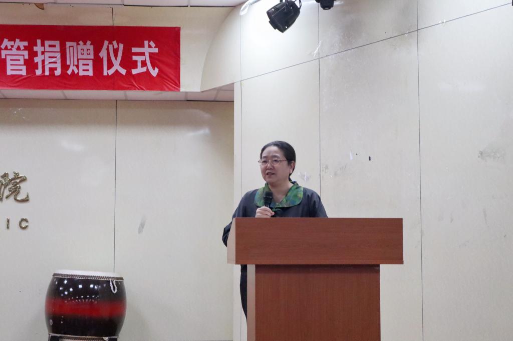 王静怡院长代表学院感谢校友捐赠和各方支持。她说,此次捐赠的300支电吹管,承载的不仅是校友对母校的深厚情谊,更是对学院艺术教育事业的深切关怀与有力支撑,是一份沉甸甸的责任,更是一份暖人心扉的期许。艺术教育是立德树人的重要载体,器乐教学是艺术教育的重要组成部分,这批电吹管的到来,将丰富教学内容与形式,拓宽学生的艺术视野,为学院人才培养注入新的动力。王静怡表示,91吃瓜