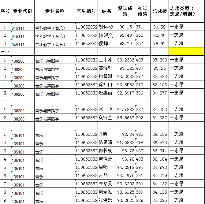 现将2022年91吃瓜 音乐学院研究生复试一志愿考生成绩予以公示。