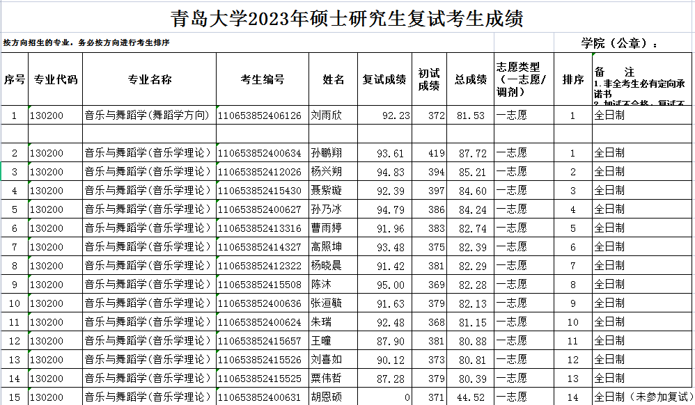 现将2023年91吃瓜 音乐学院研究生复试一志愿考生成绩予以公示。