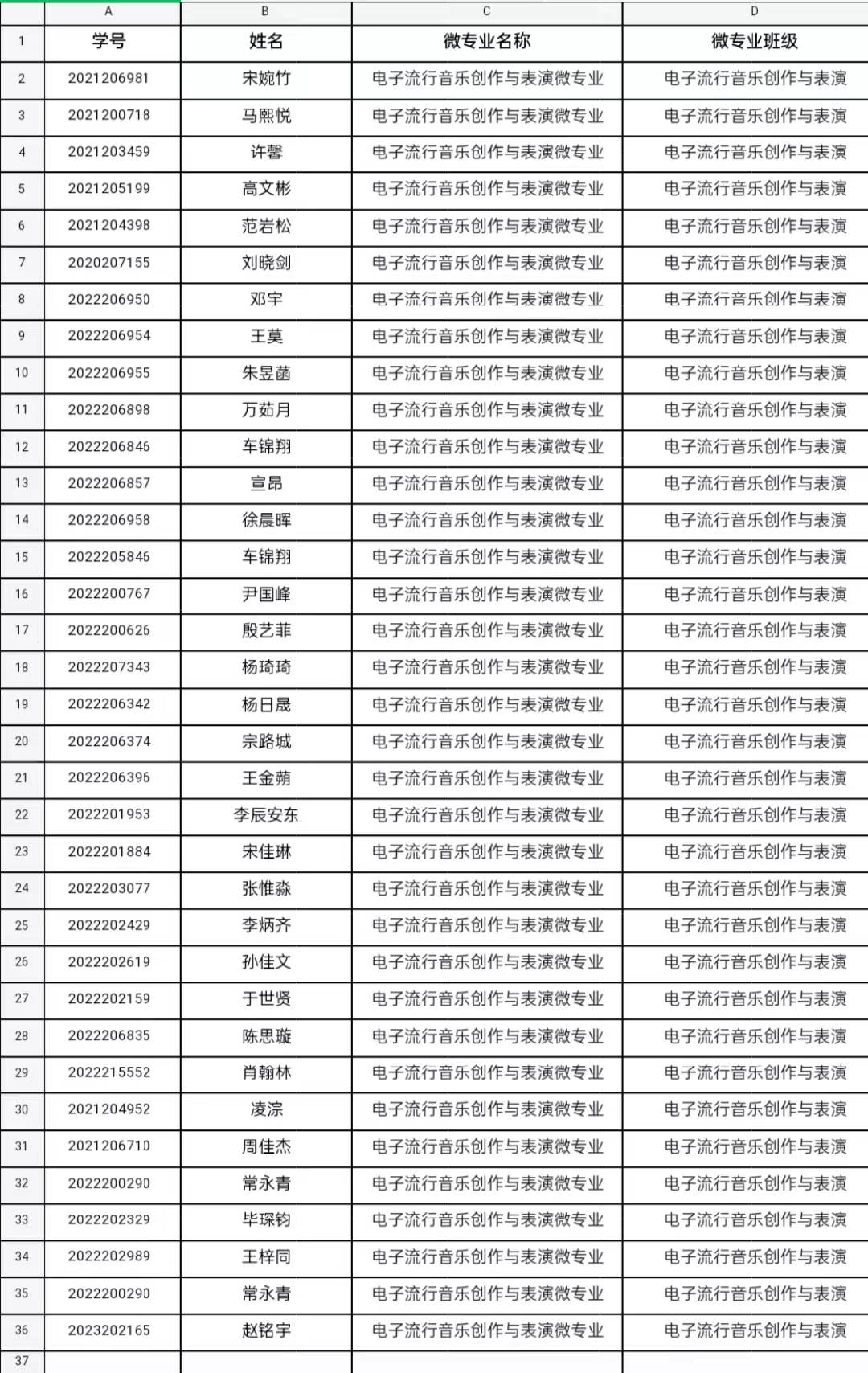 微专业录取名单公示