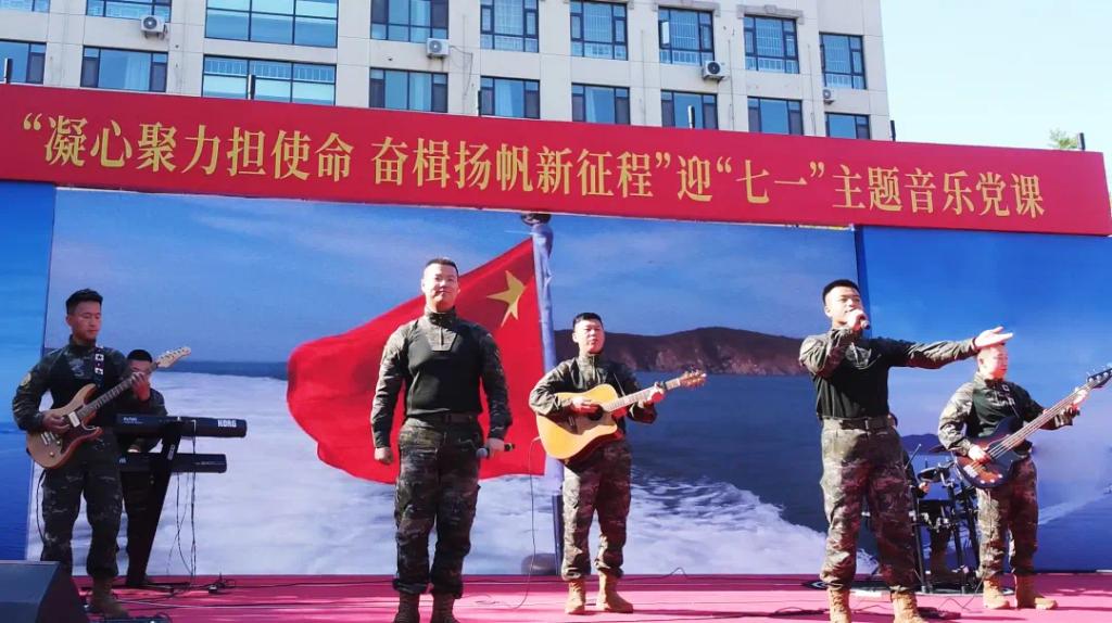 音乐党课围绕“凝心聚力担使命 奋楫扬帆新征程”这一主题,以党的奋斗历程为主线,用红色经典歌曲舞蹈为载体,回顾了百年来中国共产党的光辉历程和伟大成就。《江山》《万疆》《灿若星辰的目光》《唱支山歌给党听》《等着我,亲爱的人》等红色歌曲鼓舞人心,《映山红》《告别》等舞蹈表演振奋精神,独唱《毛泽东系列诗词》等原创节目催人奋进。音乐党课中还充分融入海警“三有”文化,执法员们原创的乐队演唱《筑梦海疆》和音乐快板书《小岗位大使命》,展示了山东海警听党话、跟党走的理想信念和守海疆、护海疆的决心意志。活动现场气氛热烈、掌声雷动。