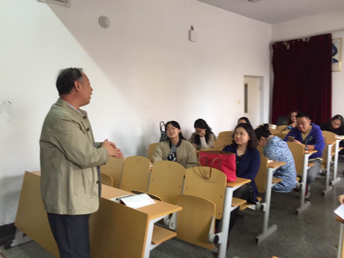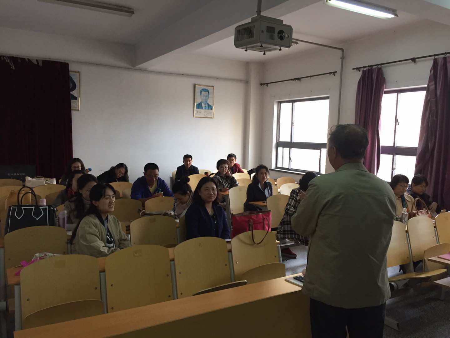 会后,全体教工党员在212教室又学习了十九大精神和党章修改的有关内容。