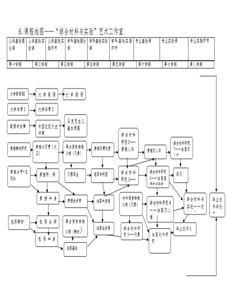 绘画专业实行工作室制人才培养模式。按专业基础课程、专业核心课程和多元实践课程将专业课划分为三大模块,每个模块包含3-5门核心课程及2-3门选修课程,将部分核心课程改为长线课程,围绕核心课程短线开设其它辅助类的基础课程,形成一个管线状课程组,将课程紧密衔接在一起,有利于学生系统的掌握相关的知识体系。将第二、第四学期的15-18周定义为选修月,学生可以跨方向、跨专业自主选择学院开设的全部多元实践课程,满足学生多元化成才需求。每个学期设置学术活动周,由工作室自主开始各类讲座、举办学术展览,帮助学生了解工作室的门槛条件,吸引学生进入工作室学习,引导学生关注学术前沿,为进入课题研究做好充分的准备。专业实践教学体系包括课堂实训、户外写生、专业考察、毕业论文和毕业创作,还包括参展参赛和各类社会实践活动。
