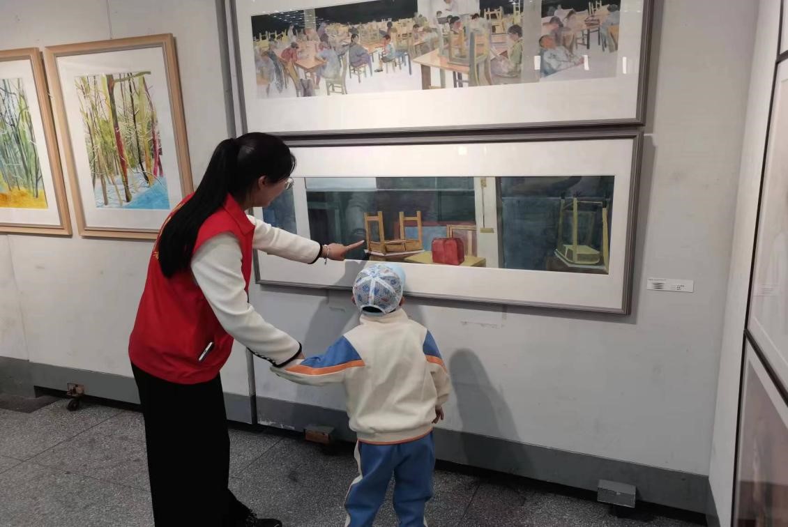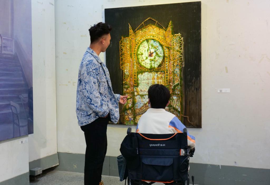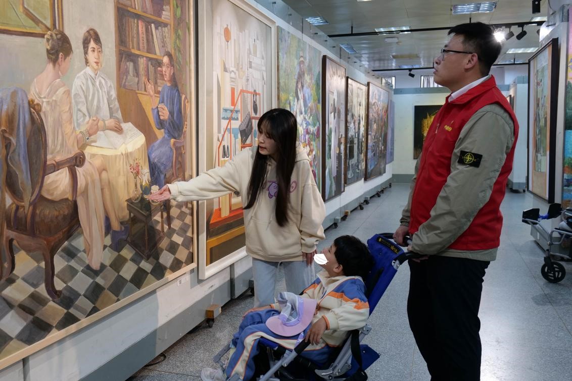 领导老师们带领着残疾儿童参观2024美术学院优秀毕业作品展,深入了解了美术学院的教育理念和艺术实践,同时探讨双方未来在艺术教育领域的合作可能,感悟91吃瓜