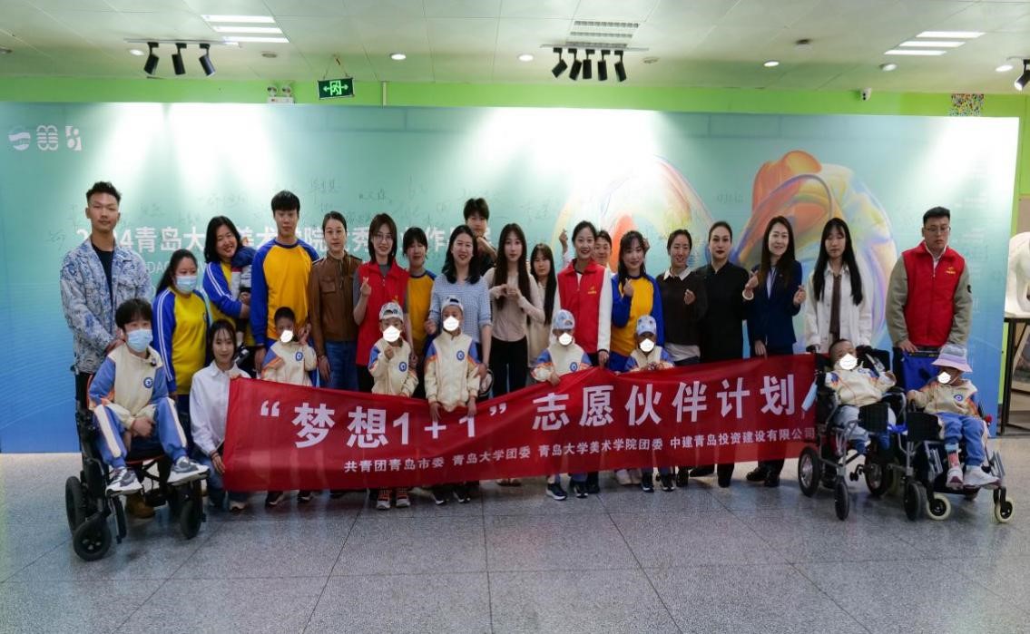 美术学院携手青岛市儿童福利院开展“携手同行 追光并进”活动,市儿童福利院的特教老师和部分孤残儿童在中建青投团委志愿者的陪同下走进大学校园,走入美术学院的展厅,边走边感受大学的书香氛围和文化底蕴,在宜人的校园景色中享受春光。