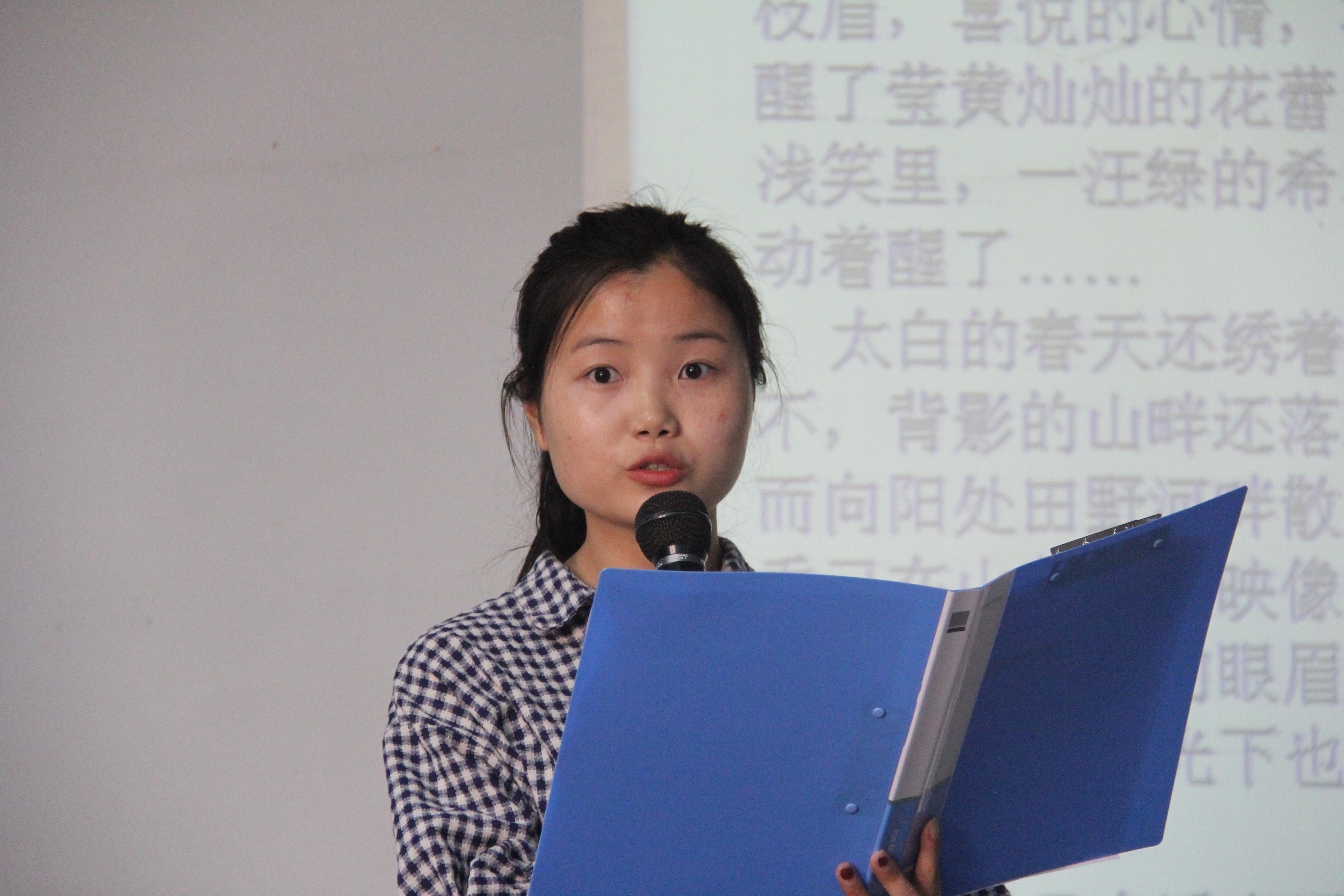 本次活动以“遇见”为主题,旨在提高学生的朗读兴趣,加强学生的人文艺术修养,共有六位朗读者参加比赛,他们的朗读文章依次为《珍惜我们的遇见》、《我的成长故事》、《遇见》、《我们仨》、《等山萸花开》和《飞鸟与鱼》,朗读者们伴着婉转的音乐声用心真情地朗读并打动着每一个在场的师生。